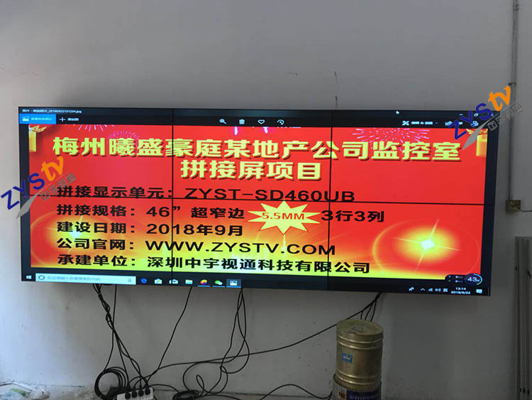 梅州熙盛豪庭某地產公司監控室46寸拼接屏項目安裝調試完成并且順利驗收,中宇視通科技全體員工從深圳發來賀電!