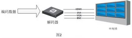 高清解碼器的主要作用,在于接收前端高清編碼圖像并解碼,然后通過自身的各種視頻  輸出接口,如HDMI/DVI/VGA/BNC,輸出顯示到電視墻上。它與前端攝像機正好是一個正反過程,前端攝像機輸入圖像,進行編碼;解碼器進行解碼,輸出圖像。針對項目大小和中心電視墻的規模,高清解碼器又有兩種主要的應用: