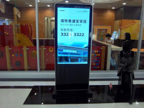 1.落地式廣告機(jī)靈活性較高,怎么理解,就是說(shuō),只要地面空間場(chǎng)地不受限制,就可以隨意挪動(dòng)擺放;